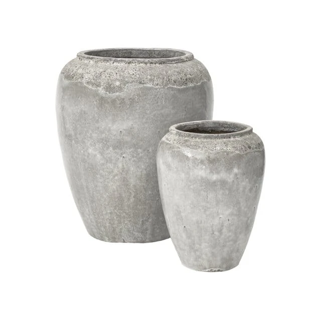 Idealne rozwiązanie dla osób pragnących przemienić swoją przestrzeń na świeżym powietrzu w tętniącą życiem oazę. W skład zestawu wchodzą dwie donice w szaro biała kolorze, które doskonale wpiszą się w każdy styl ogrodu. Donice wykonane są z wysokiej jakości ceramiki szkliwione , matowe nie jednolite. Ich design inspirowany jest naturą, co sprawia, że idealnie komponują się z roślinami. Bez względu na to, czy wypełnisz je kwitnącymi kwiatami, czy bujną zielenią, z pewnością sprawią, że Twój teren na zewnątrz stanie się spokojnym i relaksującym miejscem.Donice posiadają dziurkę w dnie i są mrozoodporne. Sprawdzą się zarówno w salonie do kwiatów doniczkowych i pięknie będą wyglądała z drzewem oliwnym lub laurowcem na ogrodzie. Dzięki nim Twój ogród zyska niepowtarzalny charakter i stanie się miejscem, gdzie chętnie spędzisz każdą wolną chwilę