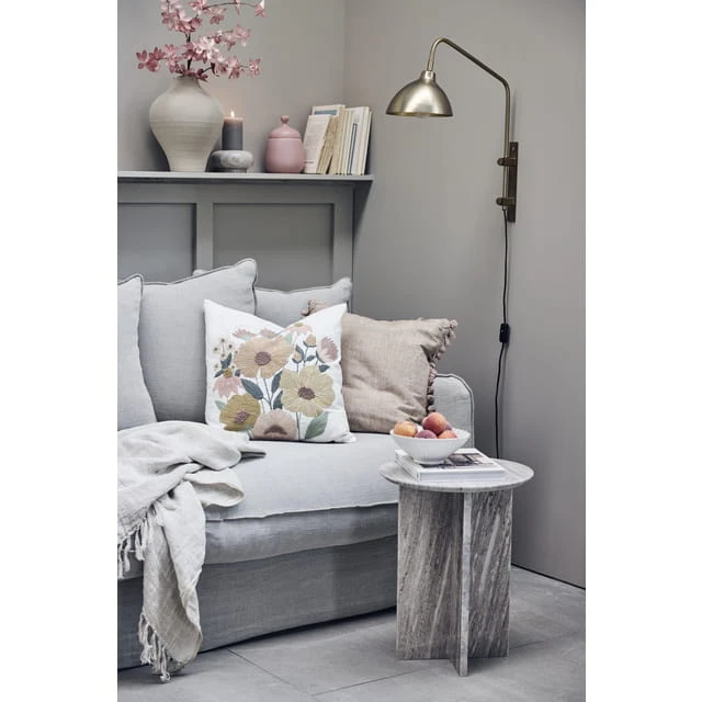 Każdy kwiat został starannie wyhaftowany, nadając poszewce luksusowy, rękodzielniczy charakter. To dekoracja, która nie tylko dopełnia aranżację, ale staje się jej centralnym, przyciągającym wzrok elementem.