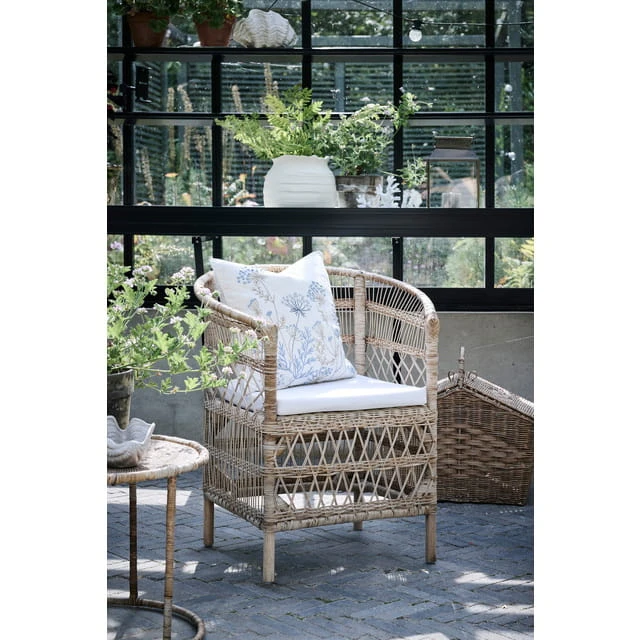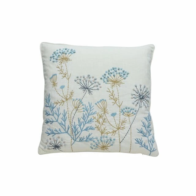 Lene Bjerre- poszewka na poduszkę 50x50 Visilia jasna w haftowane kwiaty niebieskie