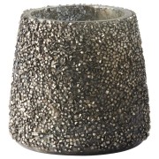 Uroczy świecznik na świeczkę tealight. Świecznik wykonany z lśniącego szkła w kolorze jasnego złota. Umieszczona w nim świeczka, da nam przepiękny połysk i odbicie światła. Oprócz tego, że jest źródłem światła, które tworzy przyjemny świąteczny duch, sam w sobie jest piękna i dekoracyjna. Wymiary wysokość 11 cm , szerokość 11 cm kolor srebro