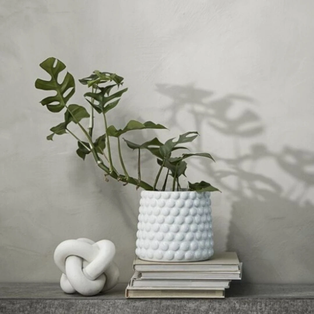 Lene Bjerre- biała doniczka z wypukłym wzorem 19cm Dotsie