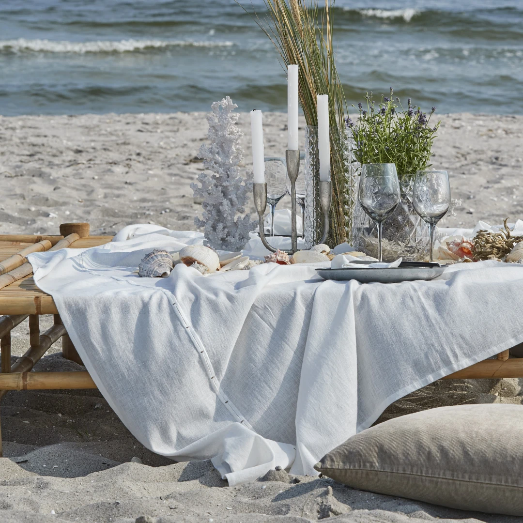 Lene Bjerre- biały obrus len i bawełna Angela - 2 rozmiary