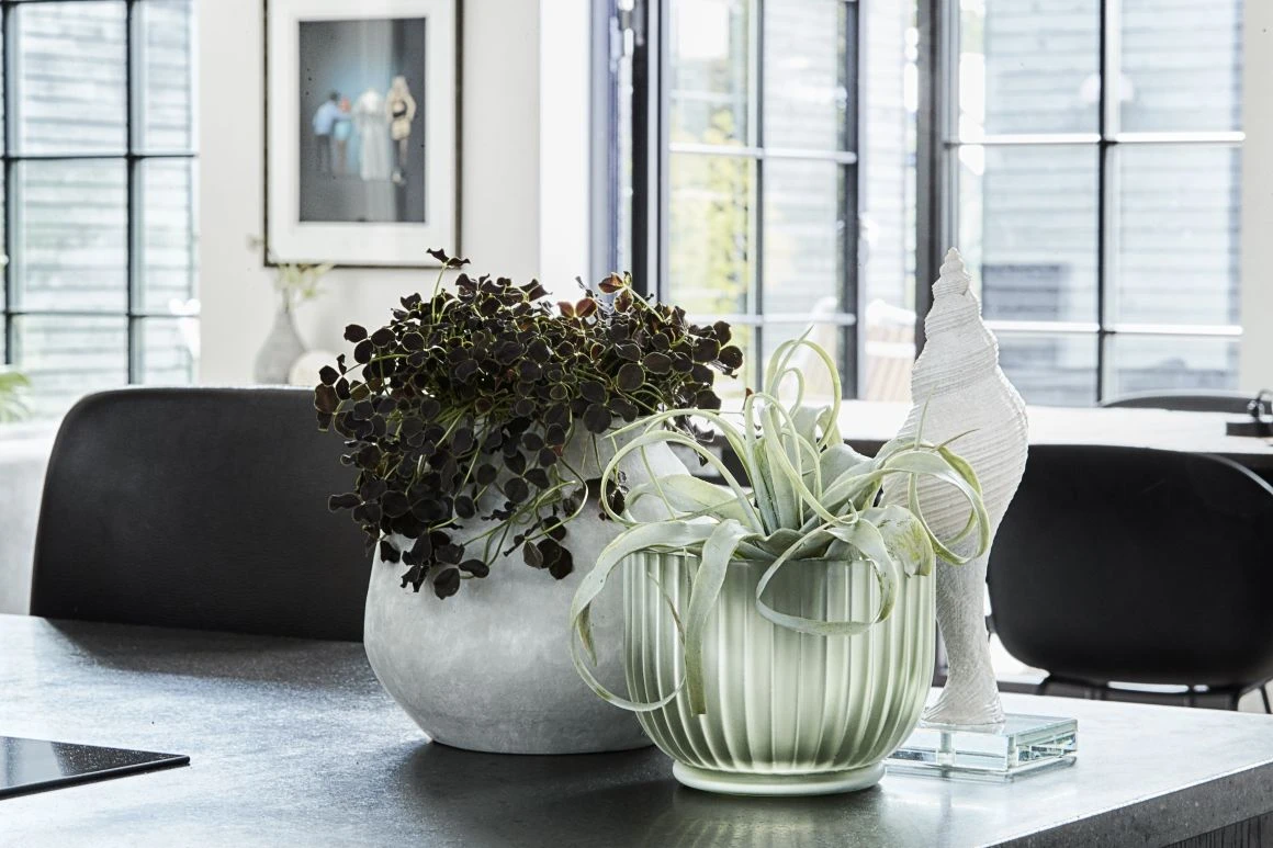 Asielle to piękna doniczka z kolekcji znanego duńskiego producenta Lene Bjerre. Donica wykonana jest w niecodziennym, nieregularnym kształcie. Wygląda jak kula, estetycznie poobijana z różnych stron. Do stworzenia donicy wykorzystano wysokiej jakości ceramikę, jednak wizualnie imituje ona surowy, modny w ostatnich sezonach beton. Taki design można zastosować w wielu wnętrzach. Sprawdzi się zarówno w tych minimalistycznych, jak i tych pełnych dodatków i kolorów. Producent zaproponował także wersję w kolorze brązowym i beżowym , dzięki czemu możesz w swoim salonie stworzyć doniczkowy komplet w trzech kolorach.
