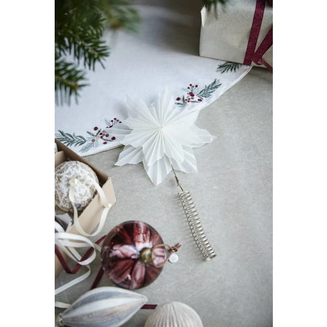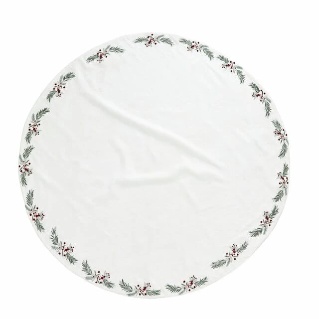 Dodaj odrobinę elegancji pod swoją choinkę dzięki uroczemu dywanikowi Penine od Lene Bjerre. Ten okrągły dywan choinkowy wykonany jest z wysokiej jakości materiału w klasycznym białym kolorze, ozdobiony wykwintnymi haftami przedstawiającymi delikatne liście ostrokrzewu i czerwone jagody – motywem inspirowanym autorskim projektem marki. Idealnie komponuje się z tradycyjnymi świątecznymi dekoracjami i pięknie podkreśla atmosferę Bożego Narodzenia. Umieść go pod choinką i dopełnij aranżację świątecznymi ozdobami wiszącymi z kolekcji Lene Bjerre, tworząc niepowtarzalny i magiczny klimat w swoim domu.