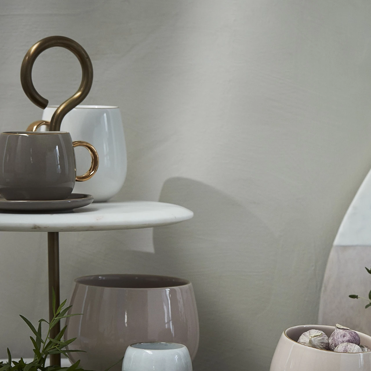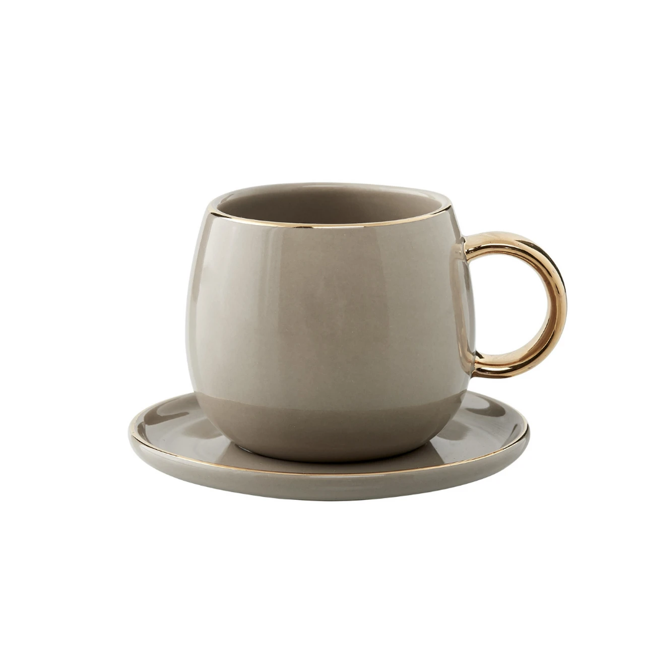 Lene Bjerre- filiżanka do espresso taupe ze złotym uchem 150 ml Clara