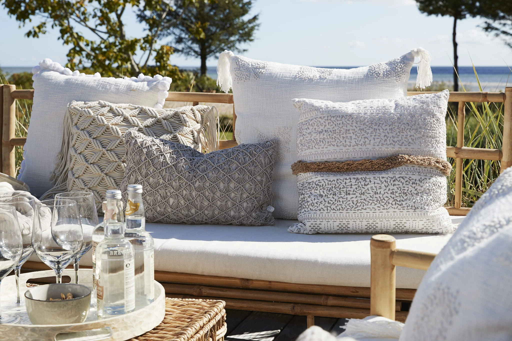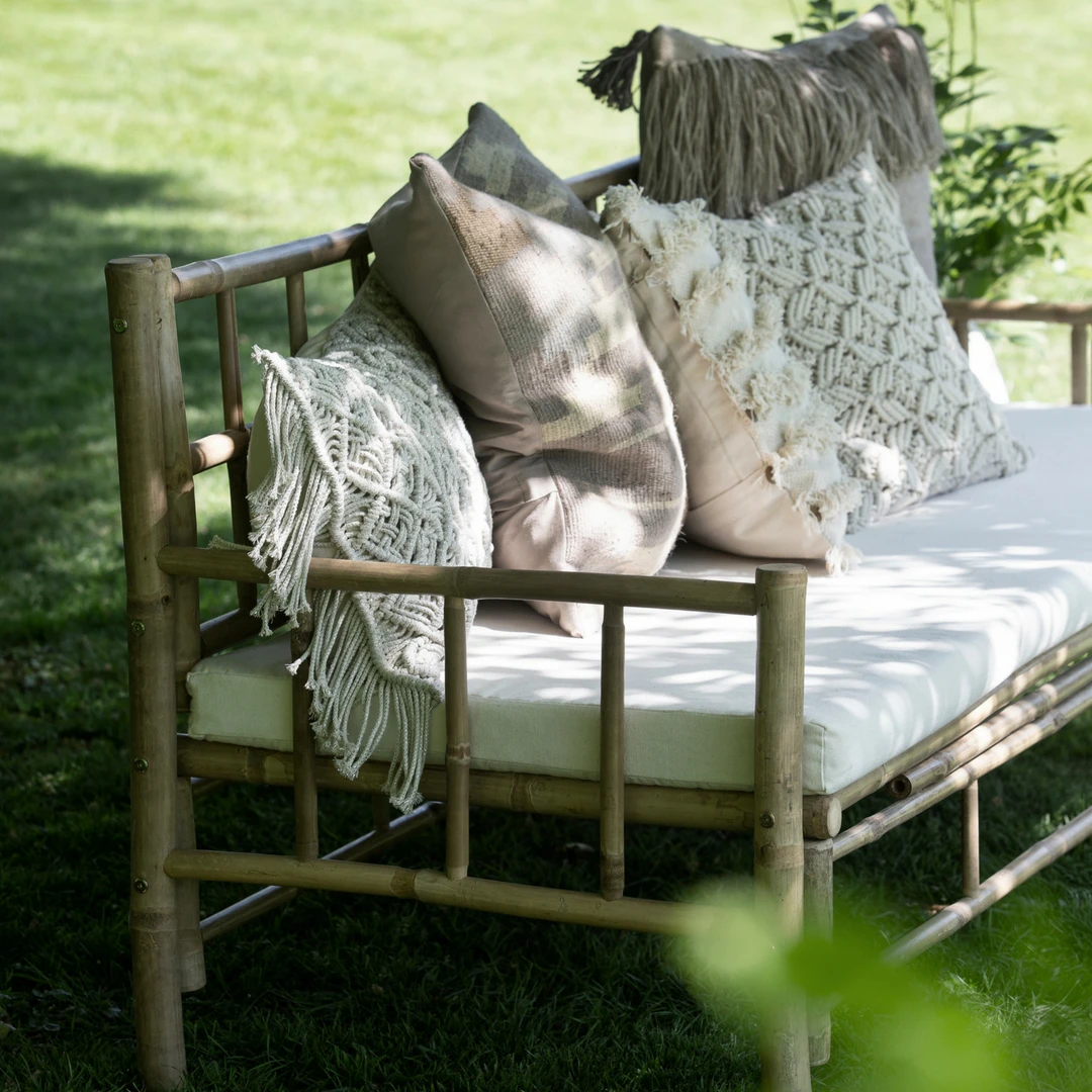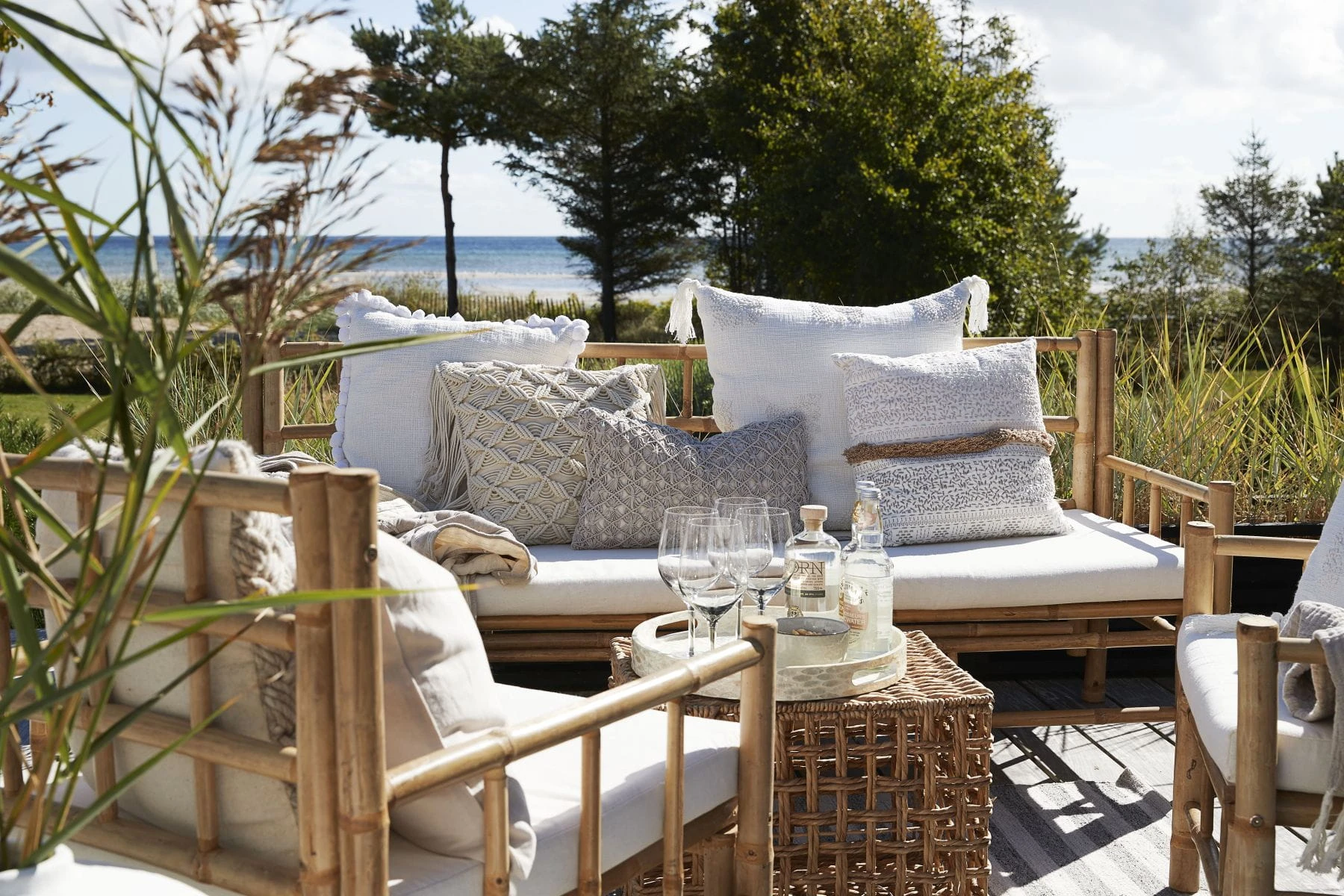Bambusowa kanapa Lene Bjerre wykonana jest ręcznie, więc każdy egzemplarz jest unikalny. Schemat jednak jest ten sam - długie i grube poziome belki, cienkie i krótkie pionowe. Bambus jest jednym z najtwardszych materiałów, pochodzących z rodziny roślin drzewiastych. Kanapa zatem jest świetnym wyborem do salonu, altany czy na taras. Zwłaszcza że w zestawie są także wygodne siedzisko i. Rodzina może wygodnie zasiąść i integrować się, spędzać czas.