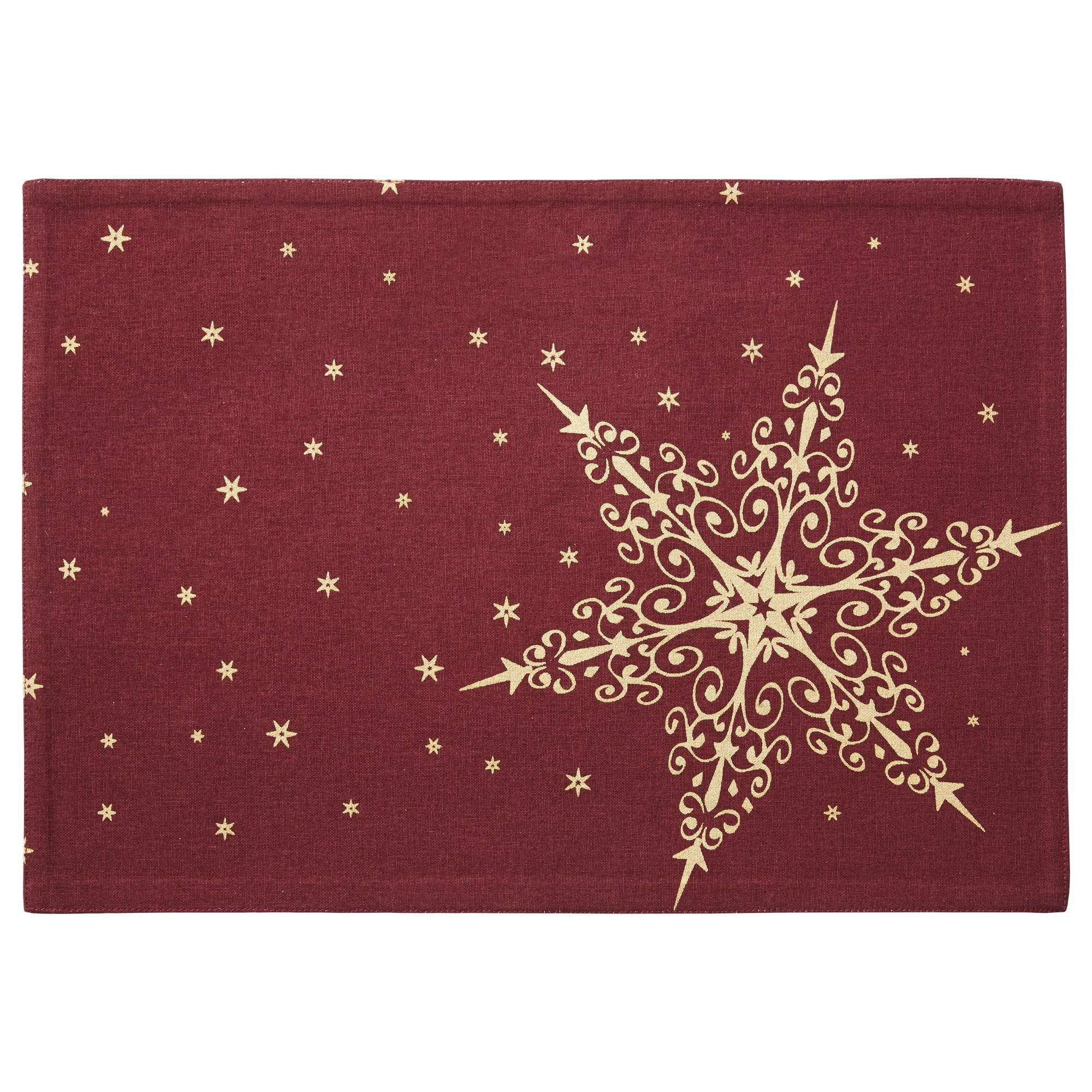 Piękna podkładka od producenta Lene Bjerre w czerwonym kolorze z jasno złotym wzorem, wykonana ze 100% bawełny i motywem gwiazdkami.