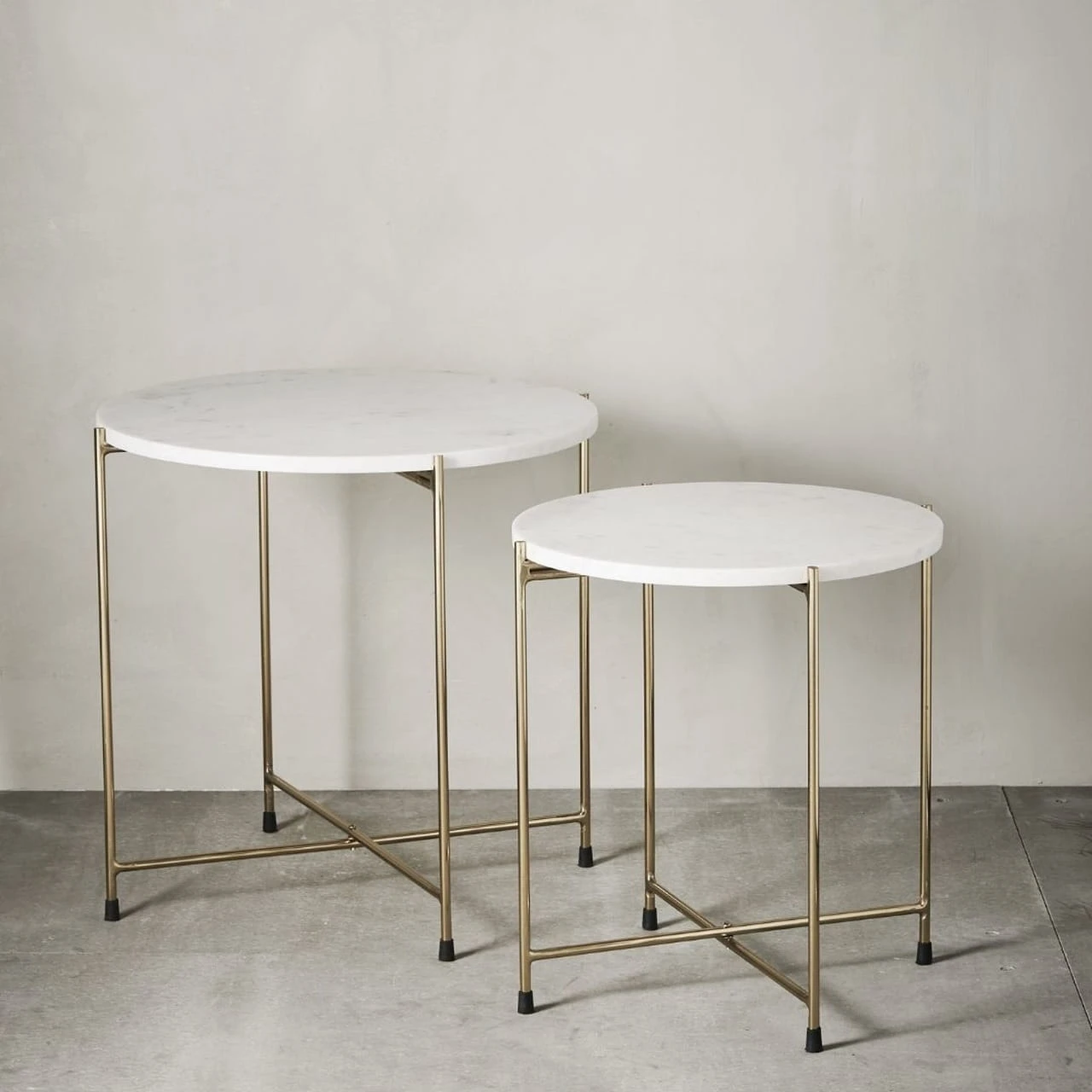 Lene Bjerre- zestaw dwóch złotych stolików z białym marmurowym blatem 45cm i 50cm Marmilla