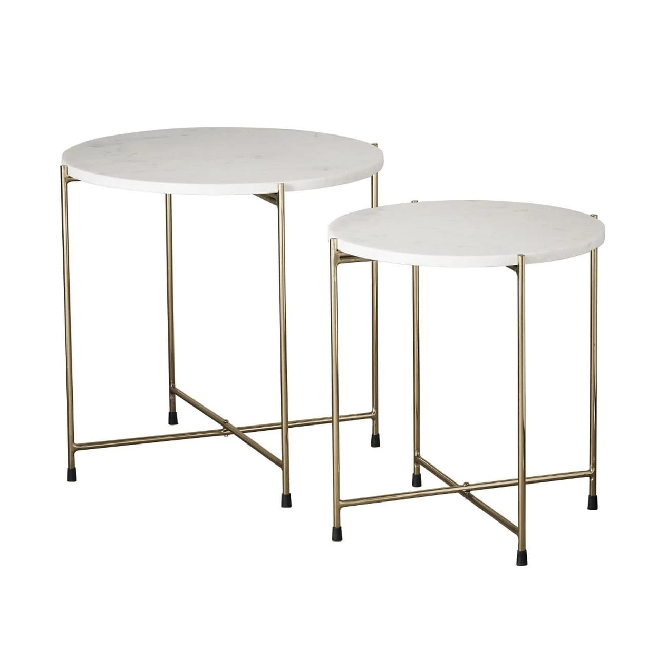 Zestaw dwóch złotych stolików z białym marmurowym blatem 45cm i 50cm Marmilla