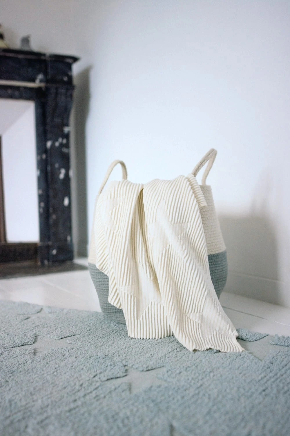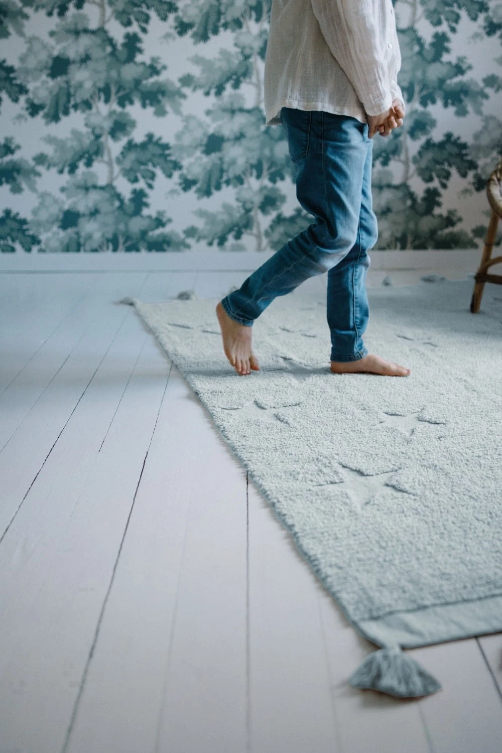 Zanurz pokój dziecka w magicznym świecie gwiazd z niebieskim, ekologicznym dywanem bawełnianym Lorena Canals STARS. Miękki i bezpieczny, ozdobi wnętrze, a dzięki możliwości prania w pralce jest niezwykle praktyczny.