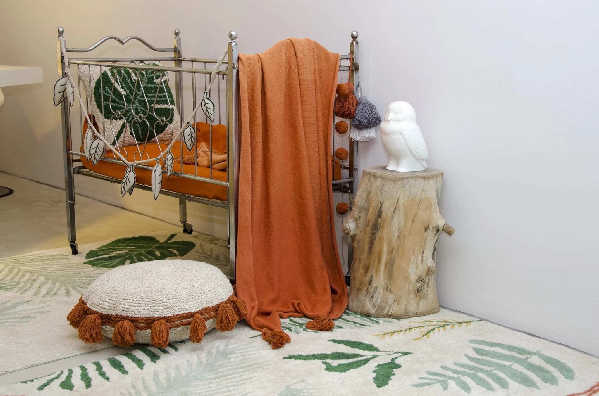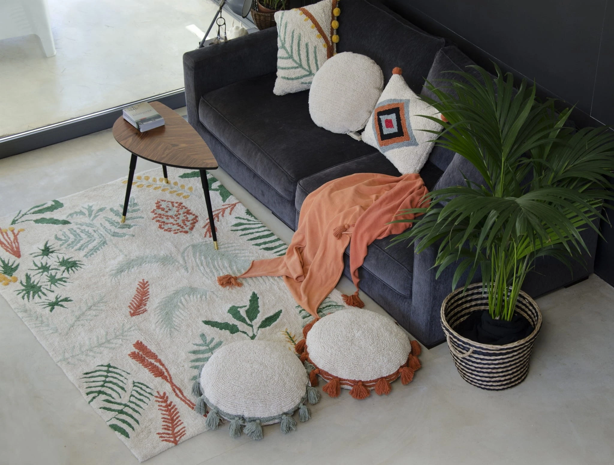 Odkryj ręcznie robioną, ekologiczną poduszkę dekoracyjną Lorena Canals PLANTS w pomarańczowym odcieniu. Miękka, designerska poduszka 50x50 z frędzlami doda charakteru każdemu wnętrzu.