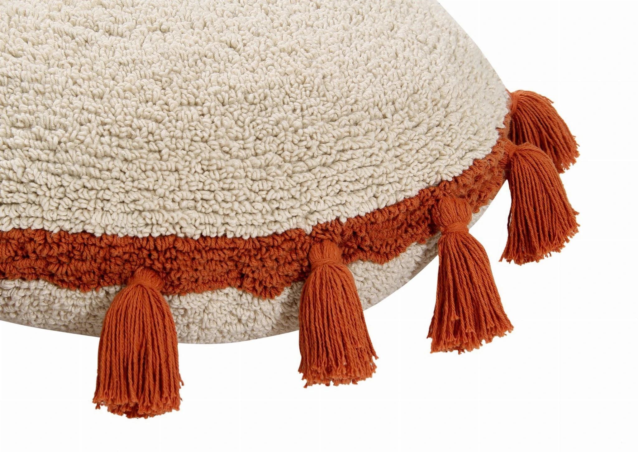 Odkryj poduszkę dekoracyjną Lorena Canals z limitowanej serii PLANTS, która wniesie do Twojego wnętrza ciepło i artystyczny charakter. Model Circle w głębokim, ziemistym odcieniu pomarańczowym to połączenie minimalistycznej elegancji z niezwykle miękką i przytulną formą. Ta ekologiczna poduszka z bawełny o wymiarach 50x50 cm stanowi nowoczesną interpretację znanej kolekcji DOTS, oferując świeże i zabawne ujęcie formy. Jej idealnie okrągły kształt, podkreślony ręcznie wykonanymi, designerskimi frędzlami, oraz przyjemna w dotyku struktura natychmiast przyciągają wzrok, czyniąc z niej niebanalny akcent w nowoczesnej aranżacji.