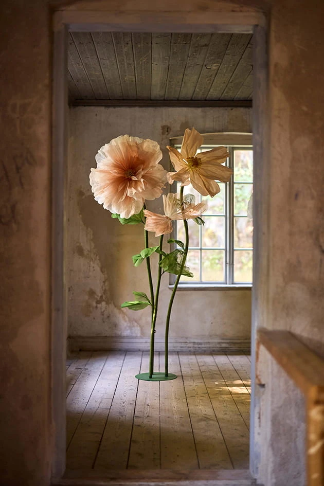 Imponujący rozmiar sprawia, że kwiat doskonale prezentuje się jako samodzielny element dekoracyjny, jak i część większej aranżacji florystycznej – w wysokich wazonach, na stojakach ekspozycyjnych lub w kompozycjach eventowych. To dekoracja, która subtelnie przyciąga uwagę, podkreślając prestiż i charakter przestrzeni.