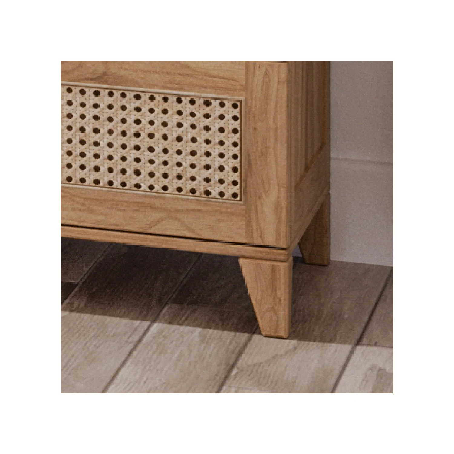 Materiały i wykończenie:Naturalny rattan, lite drewno (australijski cedr biały, melia azedarach, neem), MDF. Śruby ze stali nierdzewnej. Farby i lakiery na bazie wody – bez rozpuszczalników i oparów