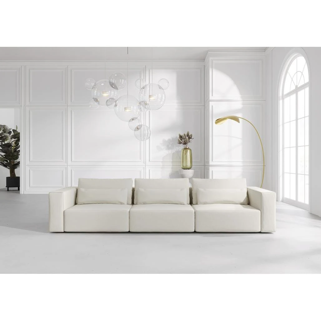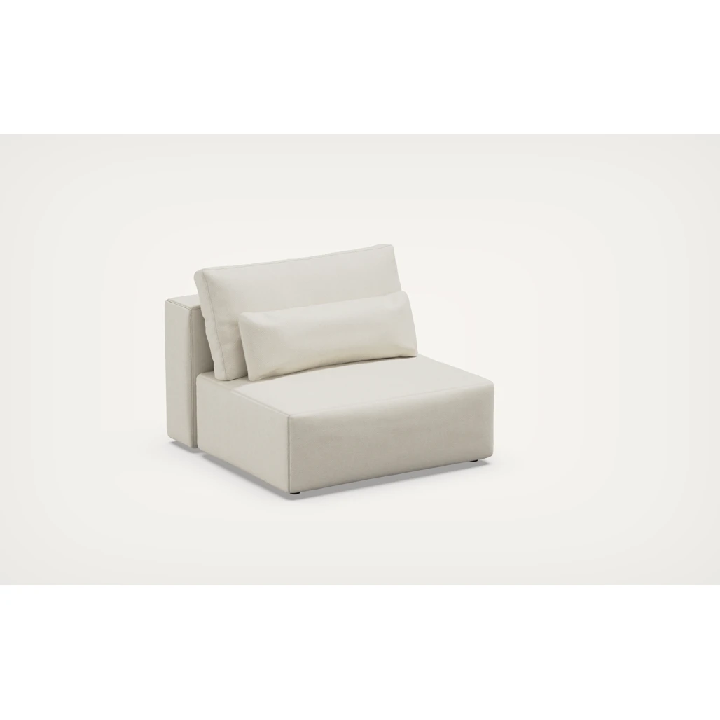 Siedzisko wyposażone jest w dwie miękkie poduszki, które zapewniają optymalne podparcie i wyjątkowy komfort podczas relaksu. Solidna konstrukcja oraz hydrofobowa tapicerka gwarantują trwałość i łatwość w utrzymaniu czystości, a elegancki design modułu doskonale wpisuje się w nowoczesne wnętrza.