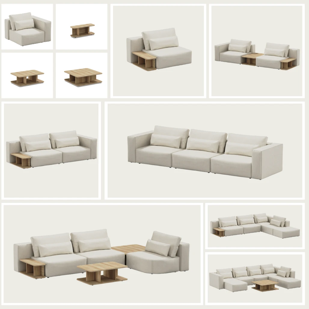 SIT - SIT - Narożna sofa modułowa Riposo Grande z pufami i stolikiem kawowym - kolor beżowy