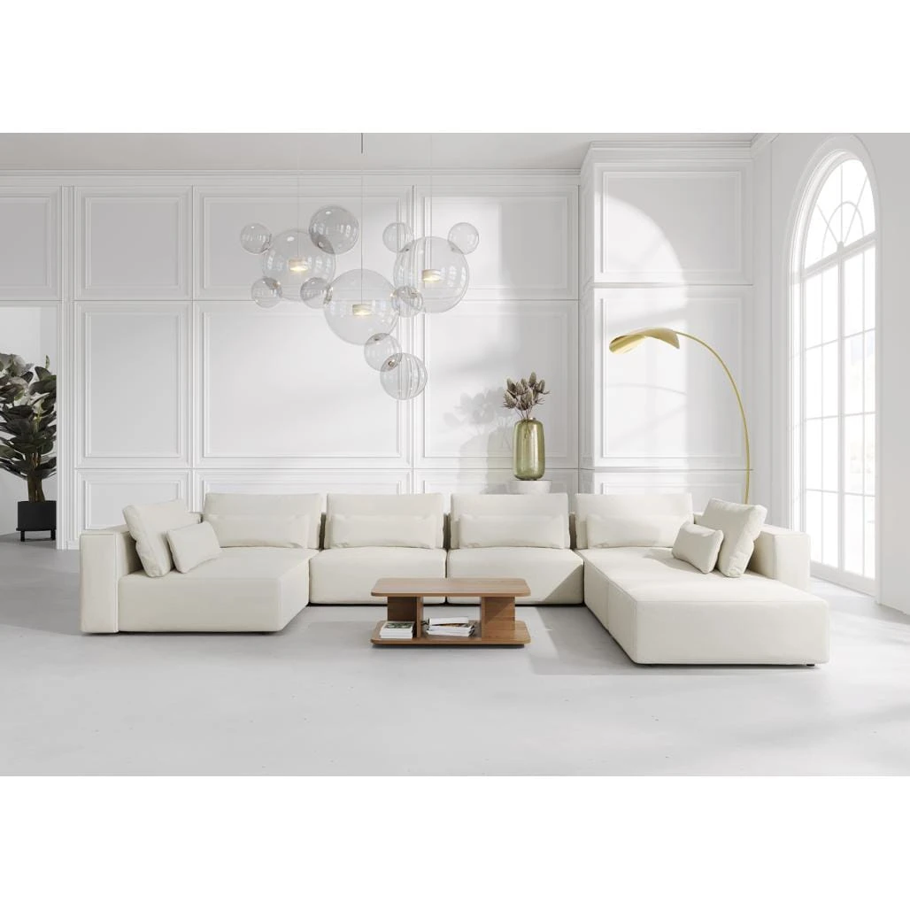 SIT - SIT - Narożna sofa modułowa Riposo Grande z pufami i stolikiem kawowym - kolor beżowy