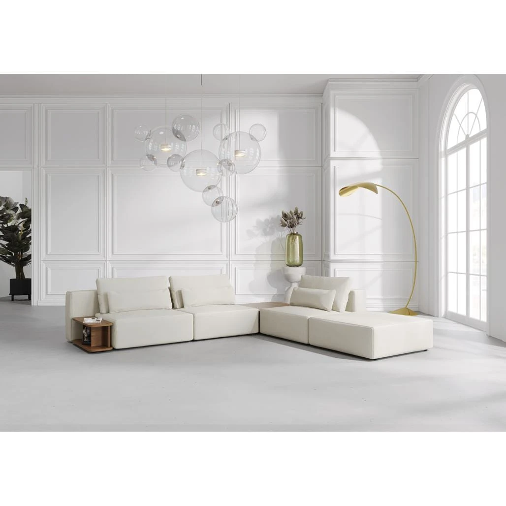 SIT - SIT - Narożna sofa modułowa Riposo Grande z pufą i stolikiem bocznym - kolor beżowy