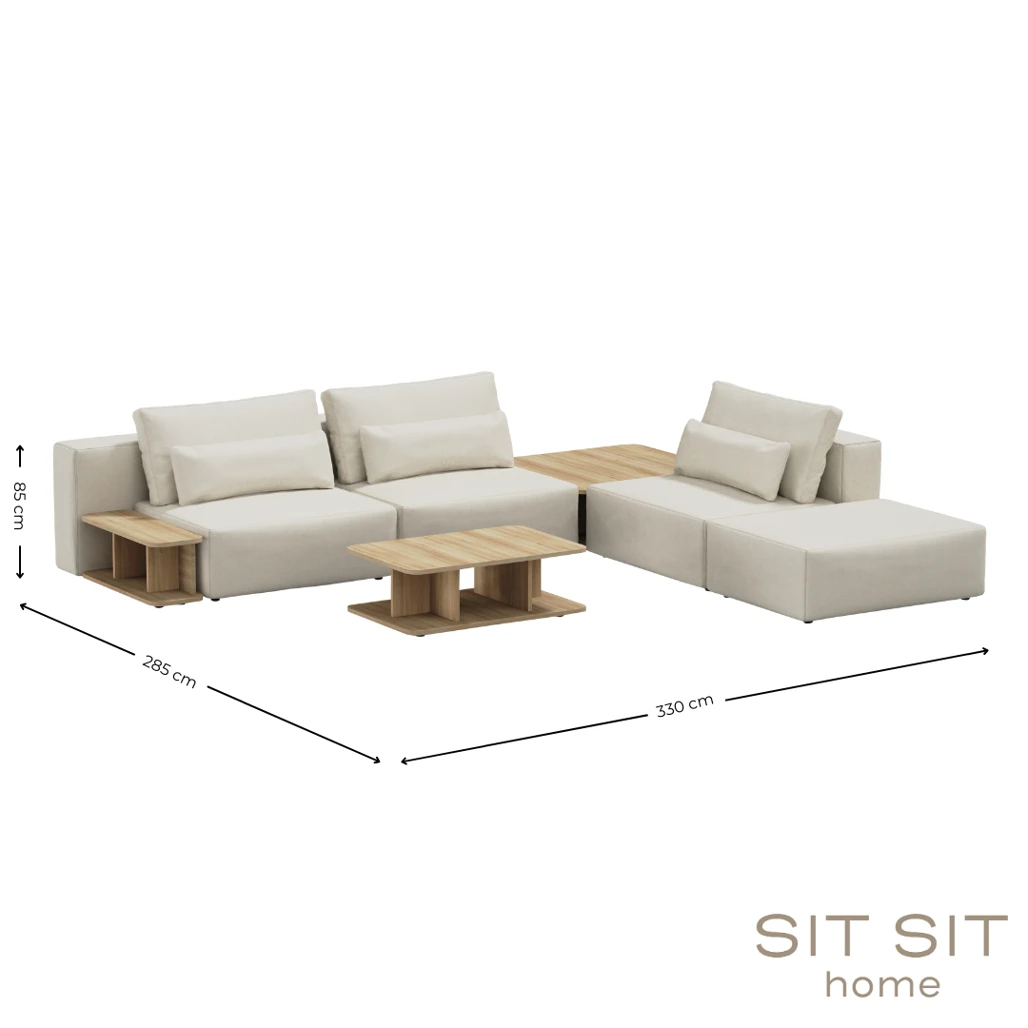 SIT - SIT - Zestaw modułowy Riposo Grande – sofa 3 - osobowa z trzema stolikami - kolor beżowy