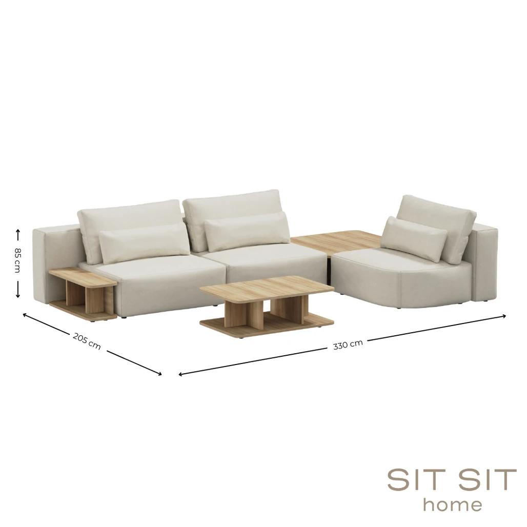 SIT - SIT - Zestaw modułowy Riposo Grande – sofa 3 - osobowa z trzema stolikami - kolor beżowy