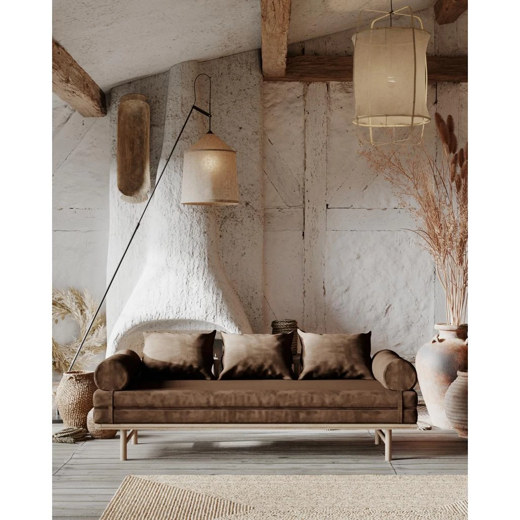 Sofa rozkładana Le MAR surowe drewno - brązowa