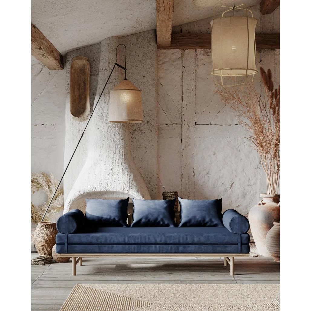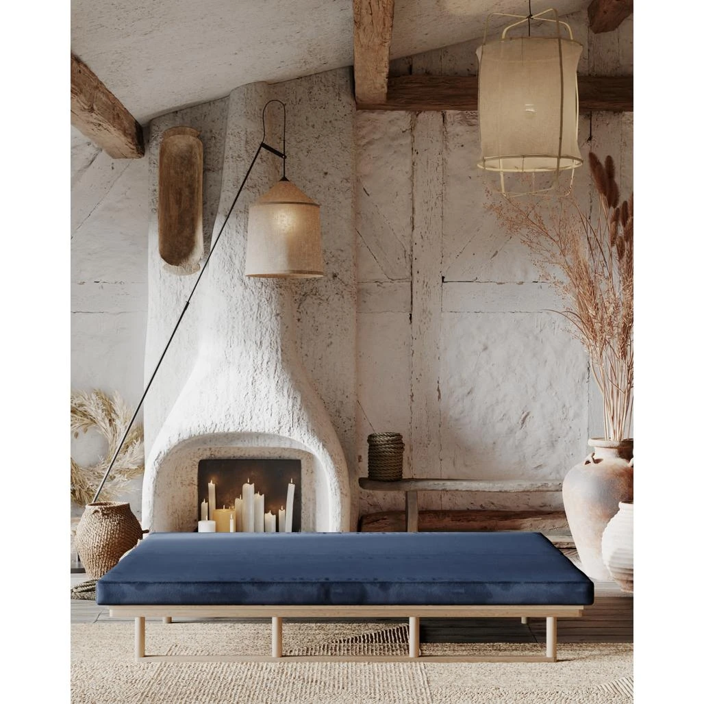 Sofa rozkładana Le MAR surowe drewno - niebieska