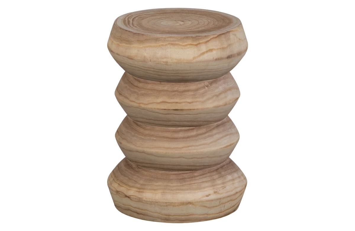Drewno paulownia znane jest ze swoich cech, widoczne sęki, które mogą powodować pęknięcia i dziury, co nadaje temu stołkowi mocny charakter.