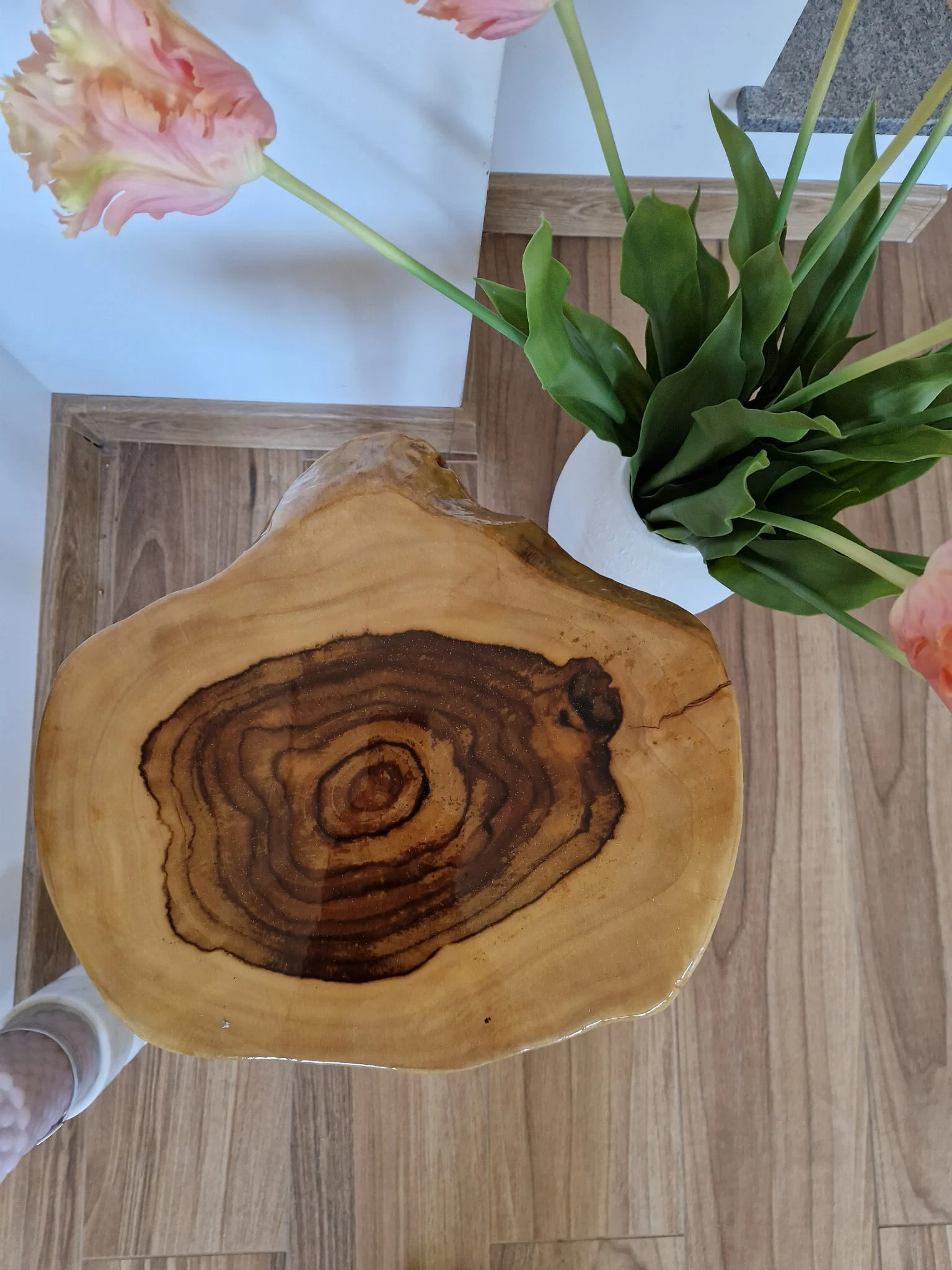Stolik kawowy, wykonany z drewna tekowego, to prawdziwe dzieło sztuki stworzone przez polskiego producenta ze Szczecina. Każdy egzemplarz jest unikatowy, ręcznie robiony z niezwykłą precyzją i dbałością o najdrobniejsze szczegóły. Nie znajdziesz dwóch takich samych egzemplarzy, co podkreśla wyjątkowość i indywidualność tego produktu. Stolik posiada trzy solidne, drewniane nogi, które zapewniają stabilność i trwałość.Drewno tekowe jest niezwykle wytrzymałe i odporne na uszkodzenia, więc możesz być pewny, że stolik posłuży Ci przez wiele lat. Dodatkowo, powłoka żywiczna chroni drewno przed wilgocią i uszkodzeniami mechanicznymi, co sprawia, że stolik jest łatwy w utrzymaniu i bardzo praktyczny.