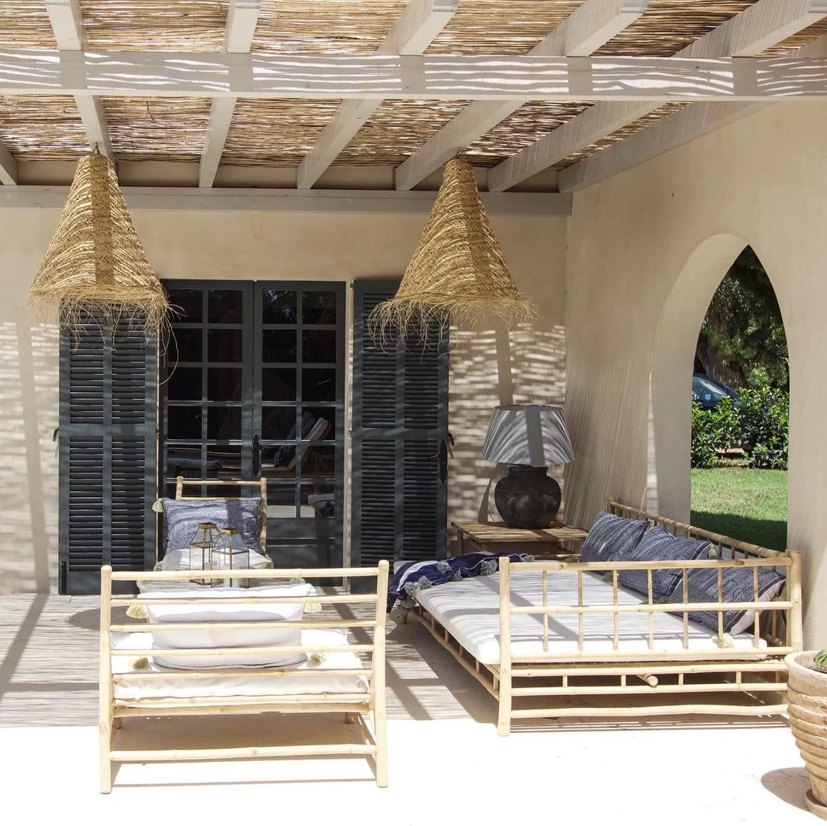 Aby Twoja nowa bambusowa sofa była dobrze zakonserwowana, zapewniamy pokrowiec ochronny, który ochroni ją przed rosą i lekkim deszczem. Należy jednak pamiętać, że pokrowiec nie jest przeznaczony do użytku przez cały rok i należy go unikać podczas intensywnych opadów deszczu lub przedłużonej ochrony, ponieważ może to potencjalnie prowadzić do rozwoju pleśni zarówno na bambusie, jak i na poduszkach. Poza sezonem zdecydowanie zalecamy przechowywanie bambusowych mebli w pomieszczeniu. Trzymając je przykryte i ustawione na suchej powierzchni znacznie wydłużymy ich żywotność.