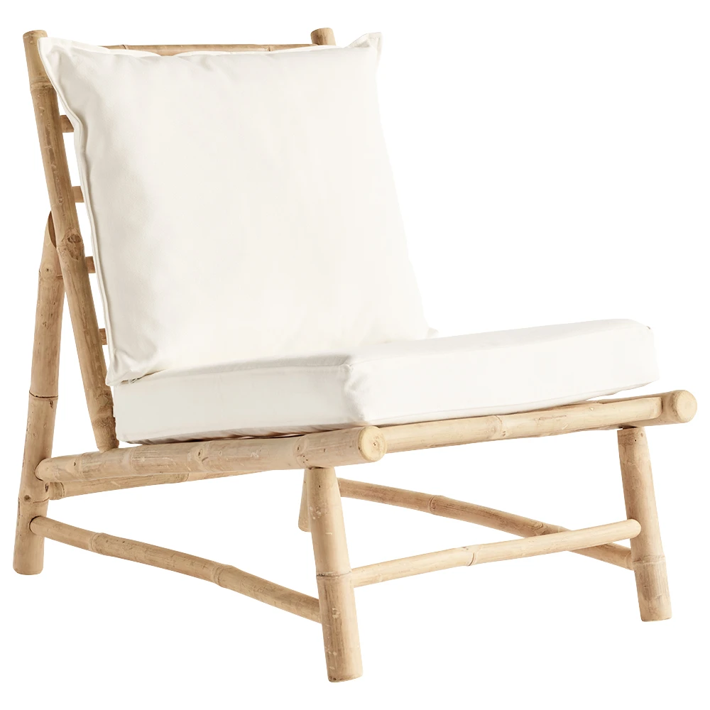 Krzesło bambusowy Tine K Home to propozycja do salonu, sypialni lub garderoby, ale też na zewnątrz, na taras lub do ogrodu. Bardzo wygodny i komfortowy, nawet podczas długiego siedzenia. Białe poszycie łatwo wkomponować w przestrzeń, a także zestawić z innymi meblami. Z tej samej serii są też kanapy i leżaki, można więc urządzić rodzinny salon lub taras, idealne do spędzania wspólnie czasu. To mebel wykonany ręcznie i bardzo starannie. Bambus jest twardy i wytrzymały, a jednocześnie lekki, więc krzesło można przenosić z miejsca na miejsce.
