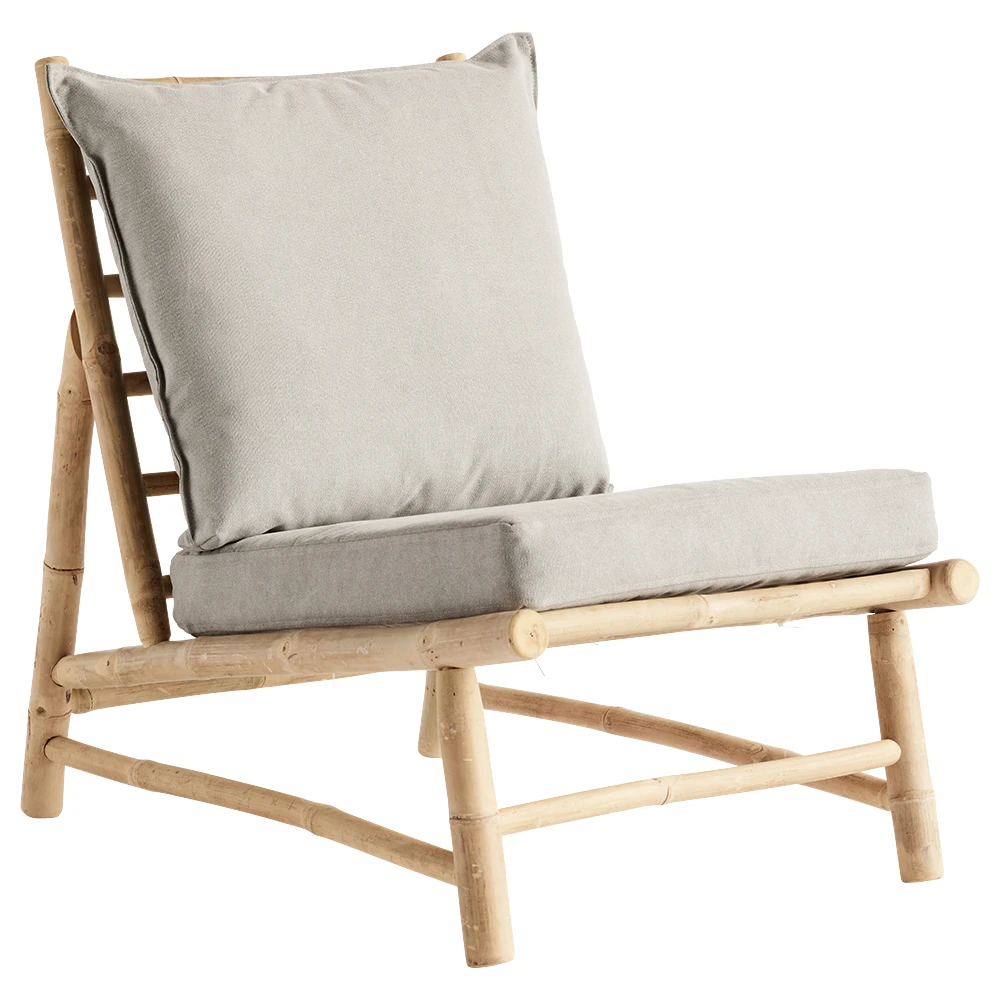 Krzesło bambusowy Tine K Home to propozycja do salonu, sypialni lub garderoby, ale też na zewnątrz, na taras lub do ogrodu. Bardzo wygodny i komfortowy, nawet podczas długiego siedzenia. Szare poszycie łatwo wkomponować w przestrzeń, a także zestawić z innymi meblami. Z tej samej serii są też kanapy i leżaki, można więc urządzić rodzinny salon lub taras, idealne do spędzania wspólnie czasu. To mebel wykonany ręcznie i bardzo starannie. Bambus jest twardy i wytrzymały, a jednocześnie lekki, więc krzesło można przenosić z miejsca na miejsce.