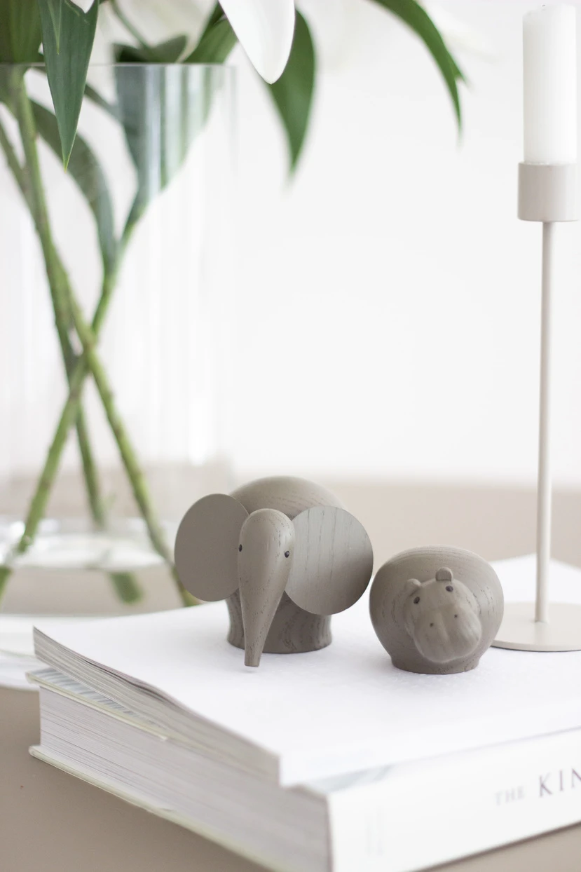 Ta minimalistyczna figurka dzięki wykorzystanemu materiałowi i miękkim, zaokrąglonym liniom wprowadzi do każdego pomieszczenia ciepło i przyjazną atmosferę. Ekspresja na twarzy słonika może się zmienić, w zależności od tego czy przekręcimy ruchomą główkę, dając Nunu urocze i zadumane spojrzenie na twarzy..Piękne wykonanie oraz przyciągające wzrok detale sprawią, że ta wykonana z drewna figurka doda każdemu wnętrzu niepowtarzalnego charakteru.